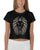 Women Black Crop Tee Lion Stone